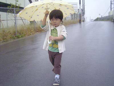雨降り、楽し〜ね〜! 何を呑気な・・・。 |