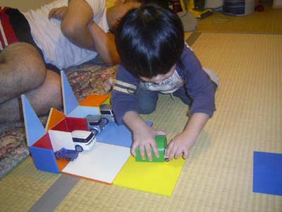 マグネットオモチャで車庫づくり。 私、疲れて寝ています。 |