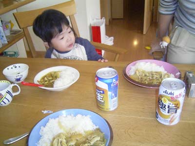 大好きなカレーを前にし、眠くて口数が減少。 あとでお昼寝しような。 |