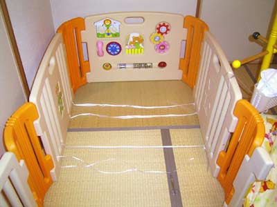 先日の初外泊では、寝相の悪いウチの息子は柵を押し広げ、
