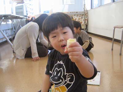 まだおやつを食べていなかったのでバナナを食べさせる。
