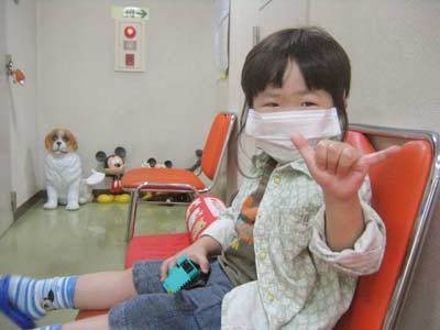 早速ハンカチとおもちゃを持たせて入院病棟から2Fの小児科外来に出る。