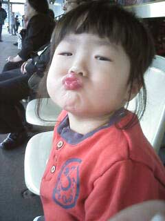 電車が遅れてなかなか来ない。 ブーたれ顔をする息子。 |