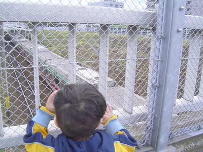 電車来た〜! 何本見ても、大喜び。 ていうか、もう行こうよ。 |
