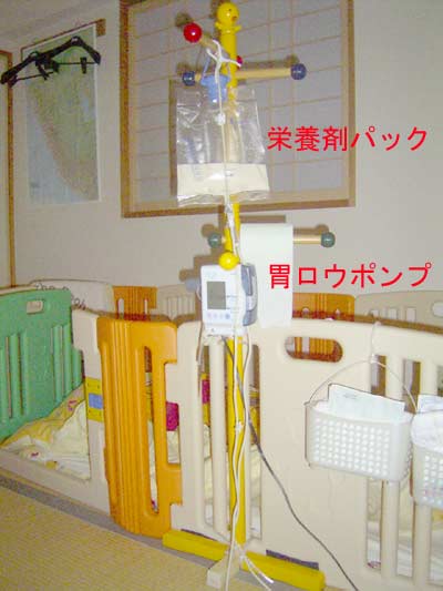 TB先生の短小腸治療の特徴の一つが胃ロウです。 小腸が短いと吸収が悪いので、夜間就寝中も持続的に栄養剤を胃に送ります。食べたり飲んだりするのと違い、これなら(子の)睡眠を削ることはありません。 鼻からチューブを入れるのには苦痛が伴いますが、胃ロウならそれはありません。 |