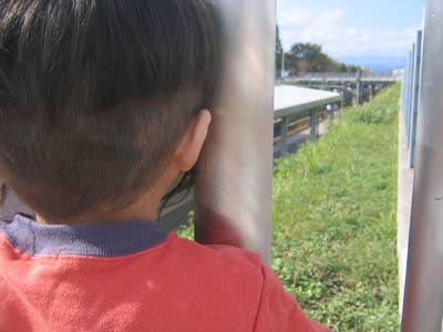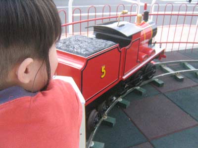 動く機関車に大満足! 1回200円だぞ、それ・・・。 |
