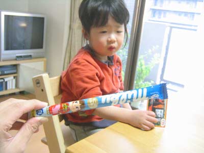 七五三の飴。 さすが食わず嫌い、 舐めようともしませんでした。 |