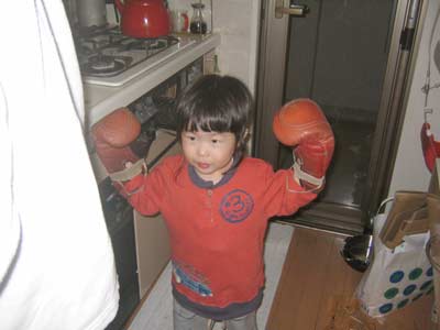 夜はアンパンチの練習。 標的はおママです。 |