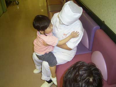 病棟に入ると、息子が廊下で遊んでいるのが見えた。