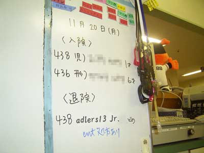 ついに白板に「退院」の文字が。 ちょっと、感動です。 |