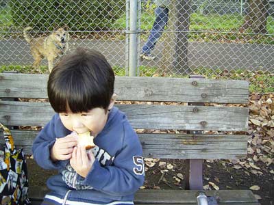 夕方、おママと合流し近くの公園へ。 おやつを持参しました。 |