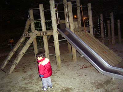 帰宅後、欲求不満(運動不足)の子を 公園に連れ出した。 相変わらず遊具は一切ダメで、 見ているこっちがイライラするほど。 ビビって全く登ろうとしないのですよ・・・。 |