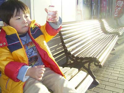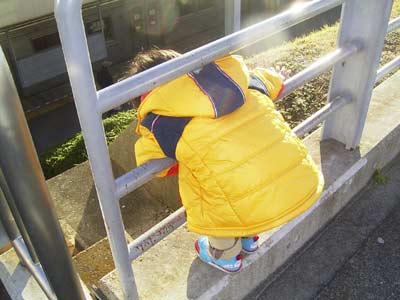 買い物途中でかぶりつきの電車鑑賞。 |