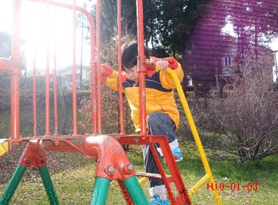 おっ、1人ですべり台を・・・。 オマエ、いいとこ見せようとしてるな? |