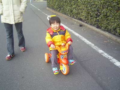 昼寝をしてから夕方には、久しぶりに三輪車。