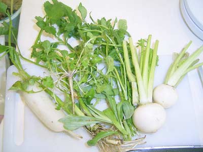 今日おママは七草を用意し、朝食にお粥を作ってくれた。