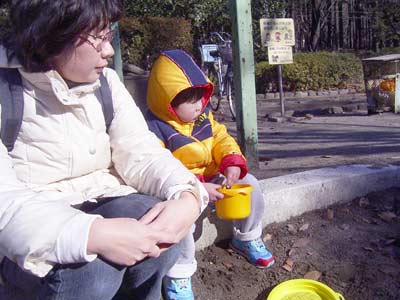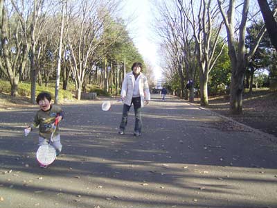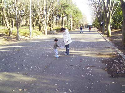 子はラケットと羽とを持ち去り、 それで落ち葉を蹴散らし遊んでいた。 おーい、やらないんだったら返してくれー。 実は朝食後に家を出て、おやつまで連続して外に居たのは今日が初めて。 これで体力的にもお腹的にも(便の回数)、ちょっと遠出できる感触を掴んだ。 |