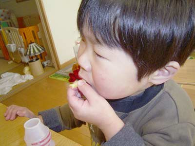 で、家に帰っておやつ。 これも持って出ていれば、まだまだ遊べそうだった。 |