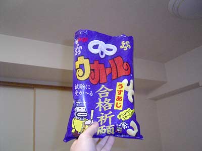 ちなみにおママはこれで願掛け。 「(ウ)カール」である。 東海地区限定?の「うすあじ」が手に入った。 これでパワー倍増である。 |