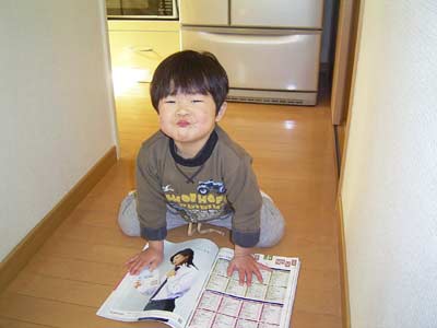 「七草見るか?」 でやっと起きた寝坊息子。 ・・・何か眉毛がつながってない?! |