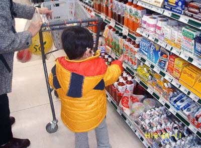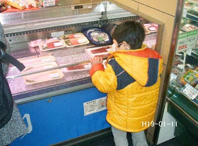 お刺身売り場ではショーケースに身を寄せて、中を覗いていました。
