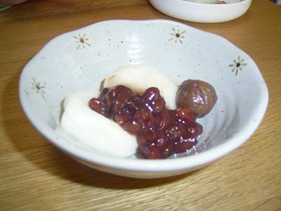 おやつは鏡開きのお餅。 全員揃ってのそれのため、ちょっと遅れての甘味となった。 まだお餅は口にしないものの、小豆と栗は平らげた。 |