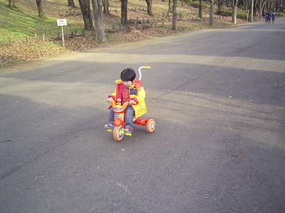 しかし昼食を摂ったら再び元気になり、今度は三輪車で公園に向かう。