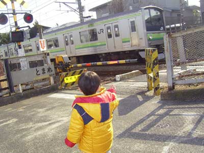そしてこの歩行者専用、極小踏切。 子は大好きだ。 |