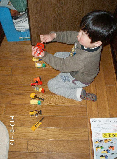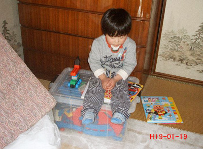 久しぶりの更新となってしまった。 HP開設以来、こんなに間を空けたのは初めてだ。 BBSも閉鎖してしまったのでアナウンスのしようがなく、 ご心配された方はお許し願いたい。 実はここ1週間と半分の間、 殆ど連日のように子をジジババに託していた。 おママの試験も間近に迫り、 また私も少々風邪気味でヘタレていた。 そのため更新が滞ってしまったのだ。 週末は私も実家に同行したが、 ジジババには情け容赦なく、 縦横無尽に暴れまくる子の様子がよくわかった。 |