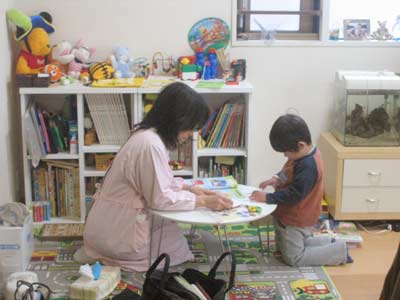 おママが「すぐ近くにいるからね。」と声をかける。