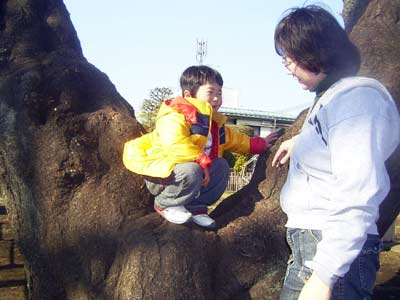 木登り初挑戦。 子ザルの置物のようだった。 |