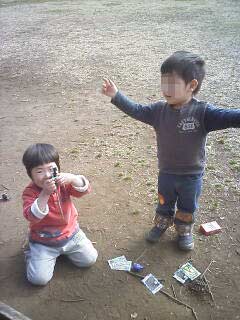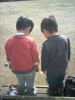Sが同年代の子と遊ぶのに、イマイチ慣れていないよう。 でもつかず離れず?微妙な距離で遊んでいたそう。 |