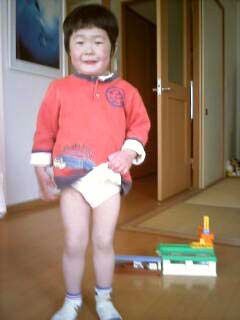 誇らしげに純白パンツを自慢するS。 |