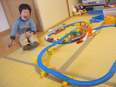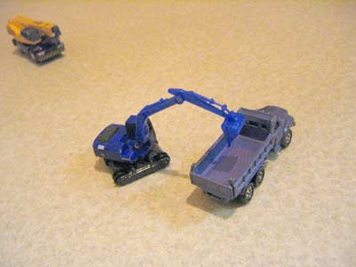 いつの間にか、ミニカーを組み合わせて遊ぶようになっている。 |