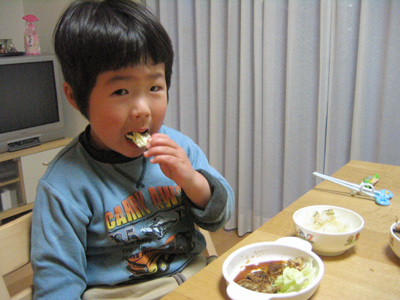 おママに作ってもらったのー! と大喜び。 |