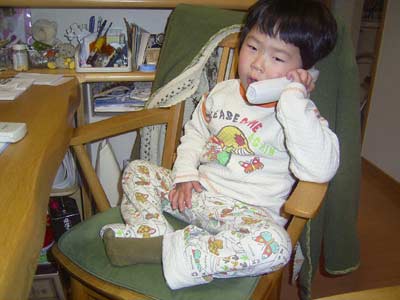 ふてぶてしい電話姿。 長電話の癖は、直さなきゃ。 |