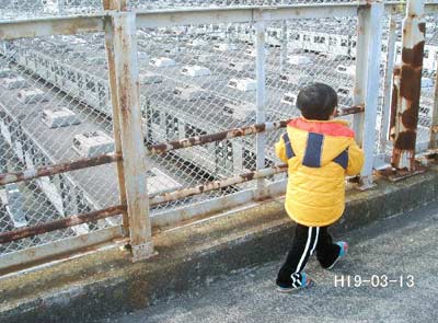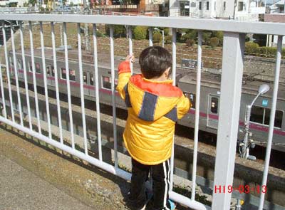 この基地の見学が終わって北側の道を歩き、陸橋上から電車を何本か見送りました。