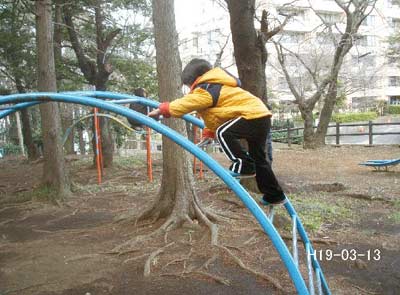滑り台、ブランコ、シーソー台、空中ハシゴ渡りなとを行い、