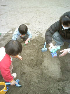 Sが砂場で山を作っていたら、お兄ちゃんがそれを蹴散らして行ったそうな。