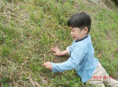 お花を摘んだ後、筑紫を見つけて大喜びでした。