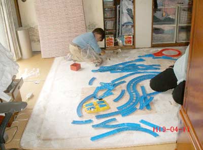 いつものレールの入った箱を6畳間に入れてやると、