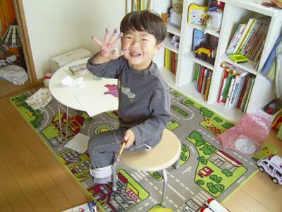 手にいろいろ色がついて喜んでいた。 |