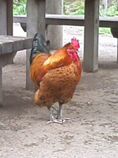 池のある公園だが、何と見事なニワトリが。