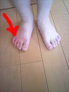 ただ右のつま先が真っ赤になっている。