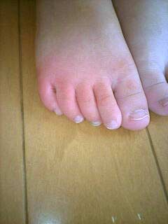 でも、つま先の赤みは全く引かない。