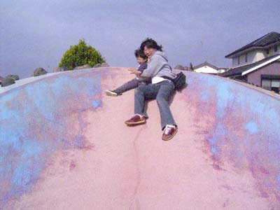 滑り台。 数ヶ月前まで登ることすらできなかった。 |