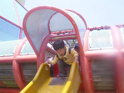 しかしすっかり退化したか、 得意のすべり台もできなくなり。 |