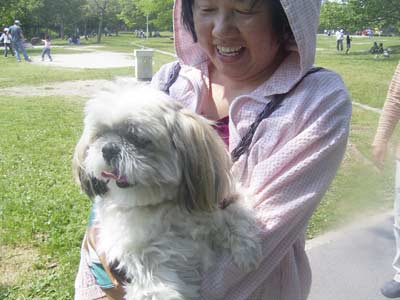 Sは率先してシーズーのノンのリードを持つ。