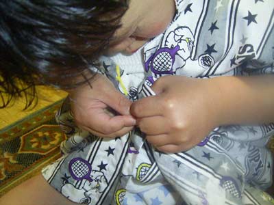 初めてボタンをかけることができた。 |