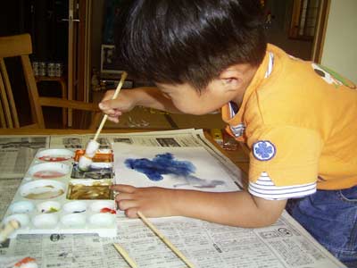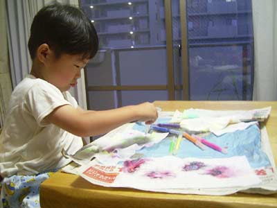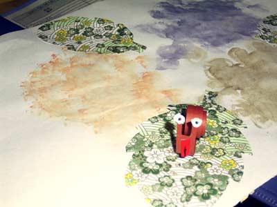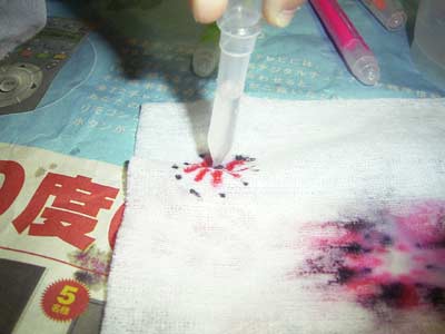 水性ペンで書いて水を垂らす。 いい感じに滲んでくれる。 |
